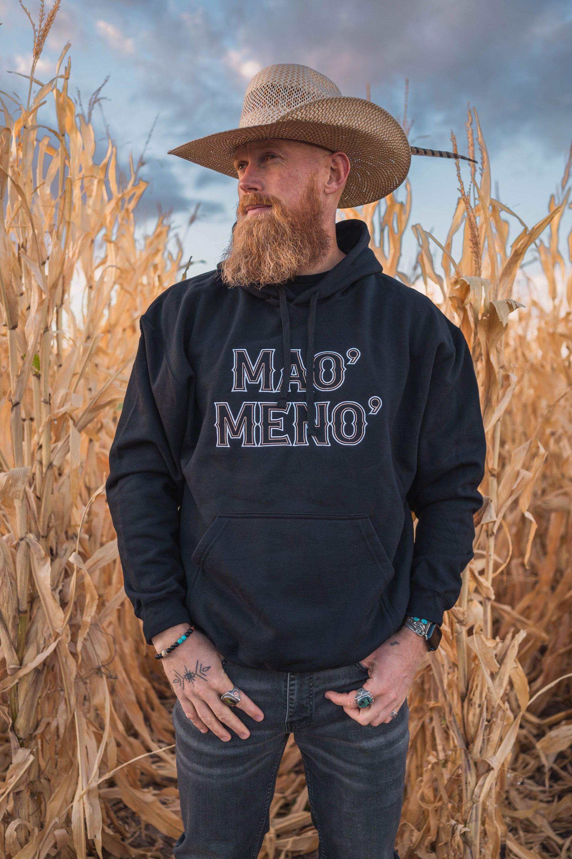 Sudadera mao' meno' con un estilo vaquero, ideal para un look casual con personalidad. Cómoda y con un toque único, perfecta para quienes prefieren la simplicidad sin perder el estilo este otoño.
